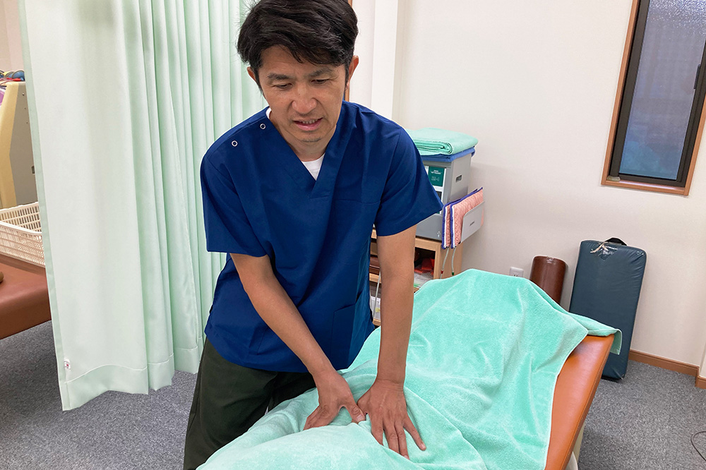 患者様の症状に合わせて、指圧による診療を行います。必要な指圧の強さ・箇所に施術を行うことで、適切に筋肉をほぐし気になる症状を改善させます。